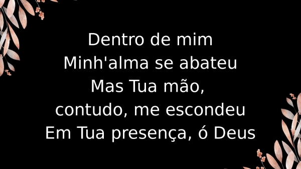 - Dentro de mimMinh'alma se abateuMas Tua mão, contudo, me escondeuEm Tua presença, ó Deus
