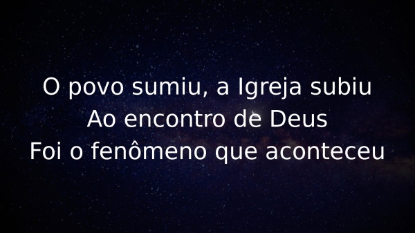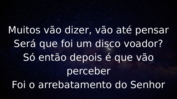 - Muitos vão dizer, vão até pensarSerá que foi um disco voador?Só então depois é que vão perceberFoi o arrebatamento do Senhor