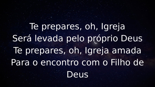 - Te prepares, oh, IgrejaSerá levada pelo próprio DeusTe prepares, oh, Igreja amadaPara o encontro com o Filho de Deus