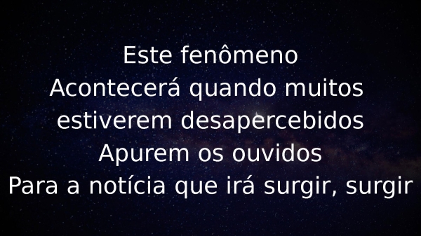- Este fenômenoAcontecerá quando muitos estiverem desapercebidosApurem os ouvidosPara a notícia que irá surgir, surgir