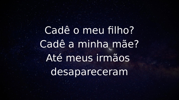 - Cadê o meu filho?Cadê a minha mãe?Até meus irmãos desapareceram