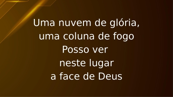 - Uma nuvem de glória,uma coluna de fogoPosso ver neste lugara face de Deus