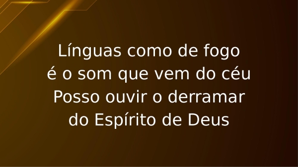 - Línguas como de fogoé o som que vem do céuPosso ouvir o derramardo Espírito de Deus