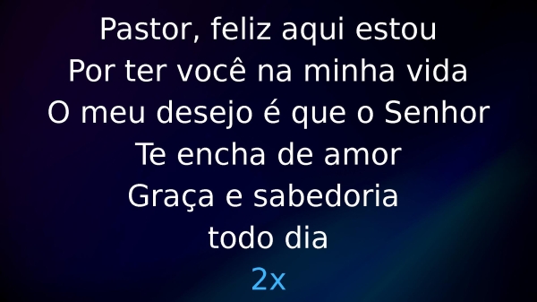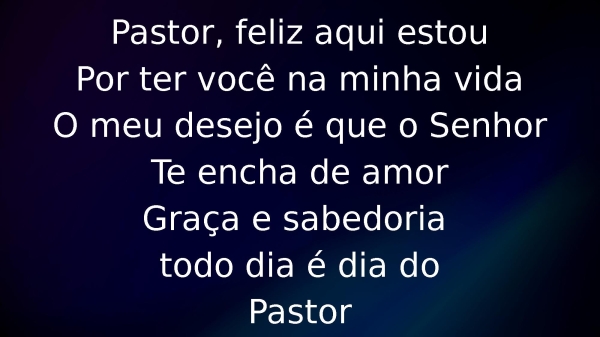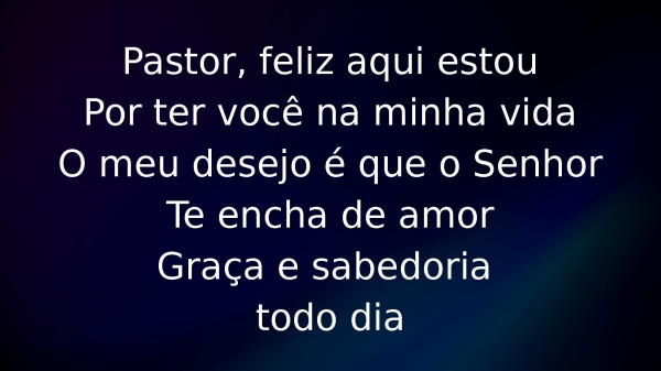 - Pastor, feliz aqui estouPor ter você na minha vidaO meu desejo é que o SenhorTe encha de amorGraça e sabedoria todo dia