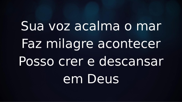 - Sua voz acalma o marFaz milagre acontecerPosso crer e descansar em Deus