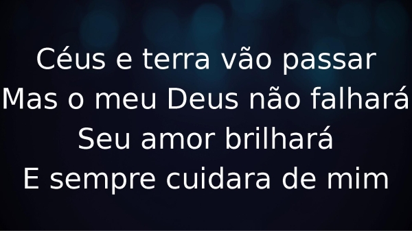 - Céus e terra vão passarMas o meu Deus não falharáSeu amor brilharáE sempre cuidara de mim
