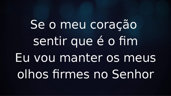 - Se o meu coração sentir que é o fimEu vou manter os meus olhos firmes no Senhor