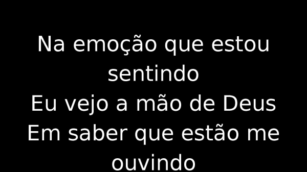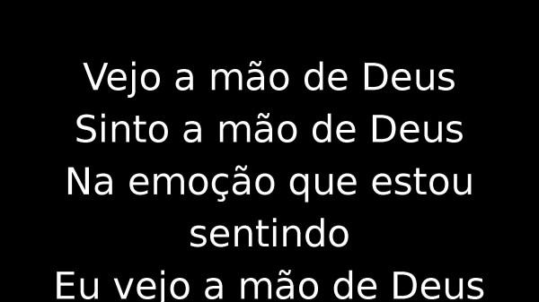 - Vejo a mão de DeusSinto a mão de DeusNa emoção que estou sentindoEu vejo a mão de Deus