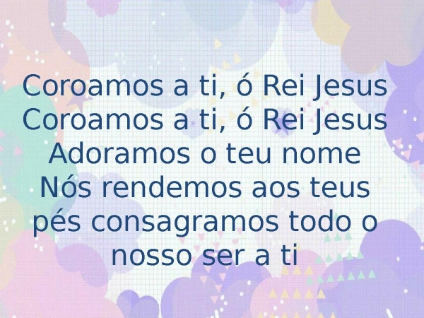 - Coroamos a ti, ó Rei JesusCoroamos a ti, ó Rei JesusAdoramos o teu nomeNós rendemos aos teus pés consagramos todo o nosso ser a ti