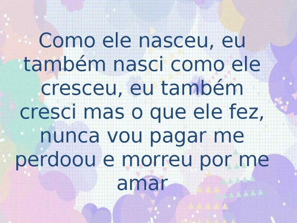 - Como ele nasceu, eu também nasci como ele cresceu, eu também cresci mas o que ele fez, nunca vou pagar me perdoou e morreu por me amar