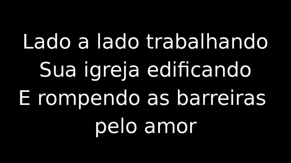 - Lado a lado trabalhandoSua igreja edificandoE rompendo as barreiras pelo amor