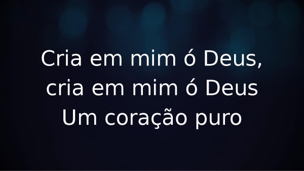 - Cria em mim ó Deus,cria em mim ó DeusUm coração puro