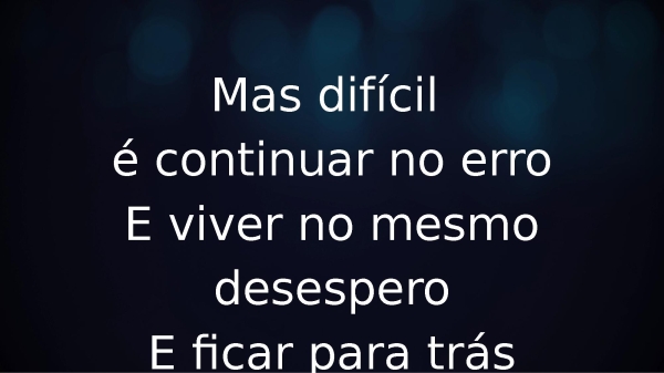 - Mas difícil é continuar no erroE viver no mesmo desesperoE ficar para trás