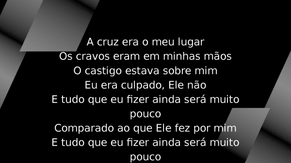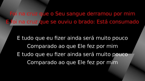 - Foi na cruz que o Seu sangue derramou por mimE foi na cruz que se ouviu o brado: Está consumadoE tudo que eu fizer ainda será muito poucoComparado ao que Ele fez por mimE tudo que eu fizer ainda será muito poucoComparado ao que Ele fez por mim