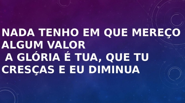 - Nada tenho Em que mereço algum valor A GLÓRIA É TUA, QUE TU CRESÇAS E EU DIMINUA