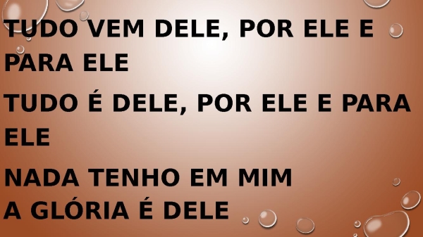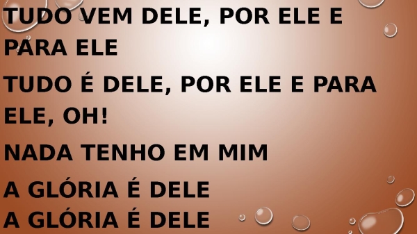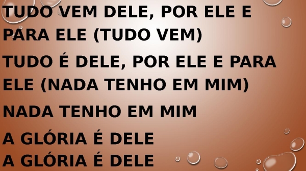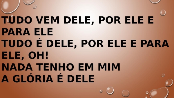 - Tudo vem dEle, por Ele e para EleTudo é dEle, por Ele e para Ele, oh!Nada tenho em mimA glória é dele