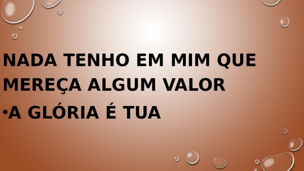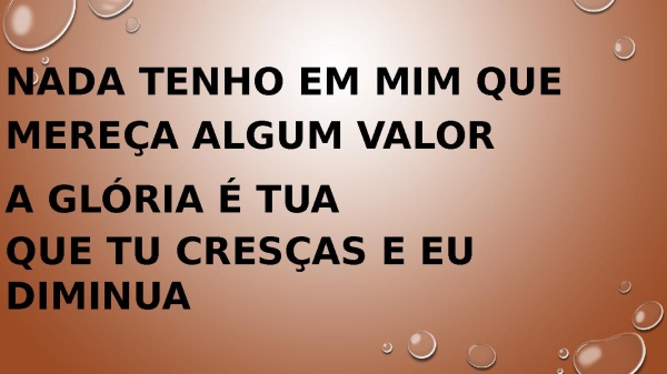 - Nada tenho em mim que mereça algum valor A glória é Tua
