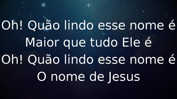 - Oh! Quão lindo esse nome éMaior que tudo Ele éOh! Quão lindo esse nome éO nome de Jesus