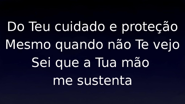 - Do Teu cuidado e proteçãoMesmo quando não Te vejoSei que a Tua mão me sustenta