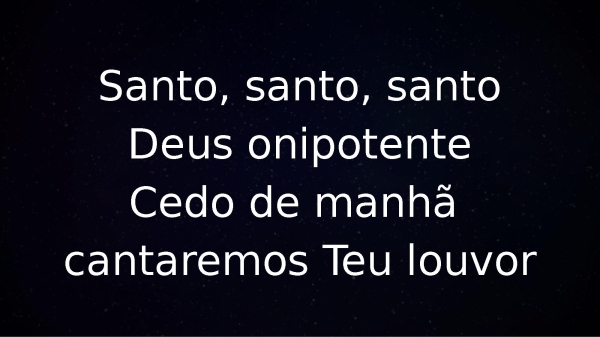 - Santo, santo, santoDeus onipotenteCedo de manhãcantaremos Teu louvor