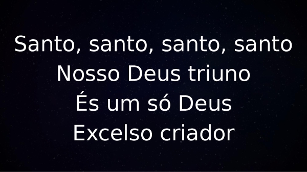 - Santo, santo, santo, santoNosso Deus triunoÉs um só DeusExcelso criador