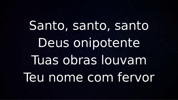 - Santo, santo, santoDeus onipotenteTuas obras louvamTeu nome com fervor