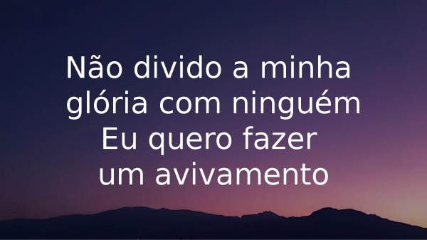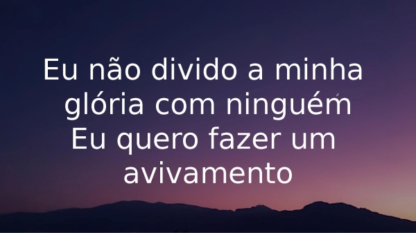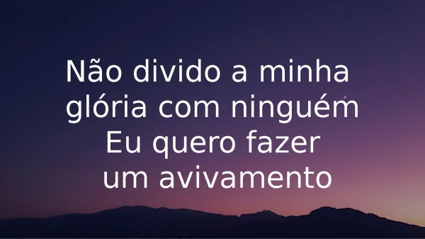- Não divido a minha glória com ninguémEu quero fazer um avivamento