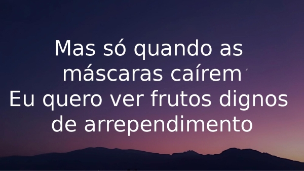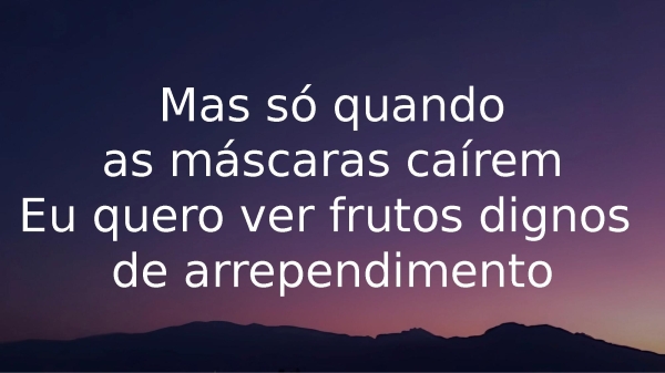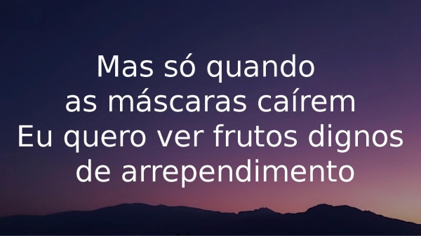 - Mas só quandoas máscaras caíremEu quero ver frutos dignos de arrependimento