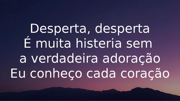 - Desperta, despertaÉ muita histeria sem a verdadeira adoraçãoEu conheço cada coração