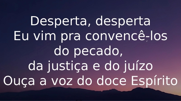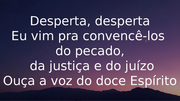 - Desperta, despertaEu vim pra convencê-losdo pecado, da justiça e do juízoOuça a voz do doce Espírito