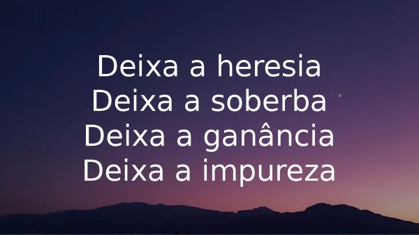 - Deixa a heresiaDeixa a soberbaDeixa a ganânciaDeixa a impureza