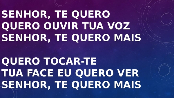 - Senhor, te quero Quero ouvir tua voz Senhor, te quero mais Quero tocar-te Tua face eu quero ver Senhor, te quero mais