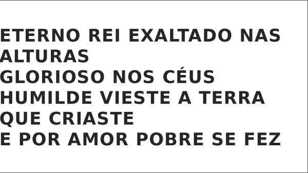 - Eterno rei exaltado nas alturas Glorioso nos céus Humilde vieste a Terra que criaste E por amor pobre se fez