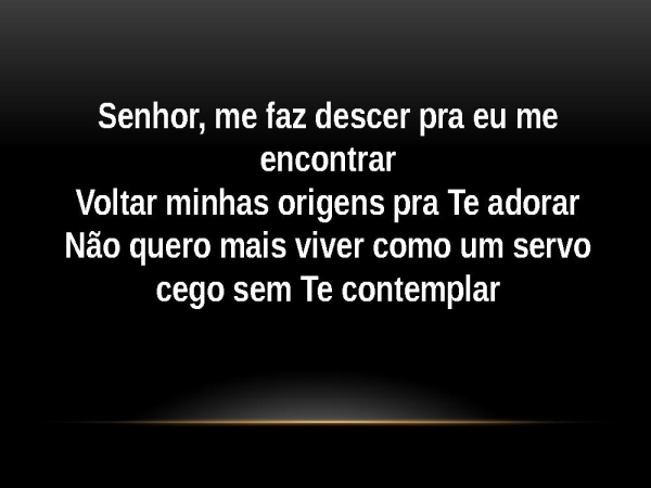 - Senhor, me faz descer pra eu me encontrarVoltar minhas origens pra Te adorarNão quero mais viver como um servo cego sem Te contemplar