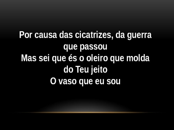 - Por causa das cicatrizes, da guerra que passouMas sei que és o oleiro que molda do Teu jeitoO vaso que eu sou
