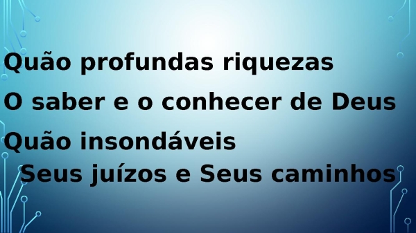 - Quão profundas riquezas O saber e o conhecer de Deus Quão insondáveis Seus juízos e Seus caminhos