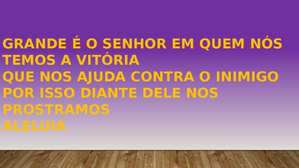 - Grande é o senhor em quem nós temos a vitória Que nos ajuda contra o inimigo Por isso diante dele nos prostramos Aleluia