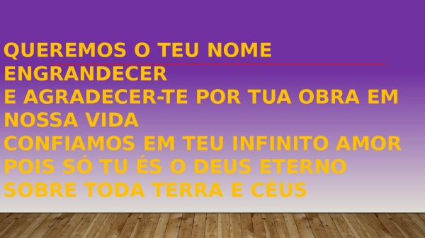 - Queremos o teu nome engrandecer E agradecer-te por tua obra em nossa vida Confiamos em teu infinito amor Pois só tu és o Deus eterno sobre toda terra e céus