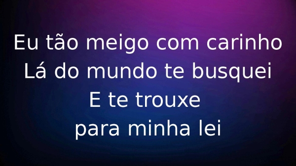 - Eu tão meigo com carinhoLá do mundo te busqueiE te trouxe para minha lei