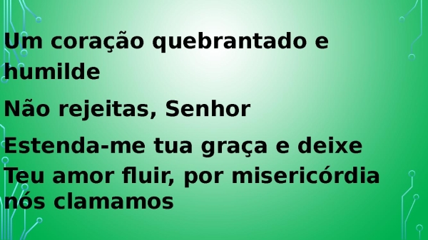 - Um coração quebrantado e humilde Não rejeitas, Senhor Estenda-me tua graça e deixe Teu amor fluir, por misericórdia nós clamamos