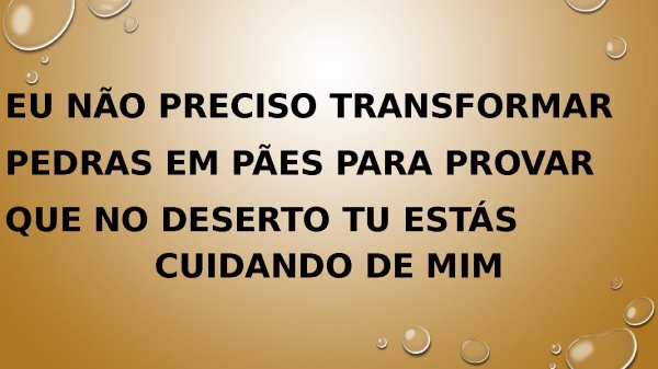 - Eu não preciso transformar Pedras em pães para provar Que no deserto Tu estás Cuidando de mim