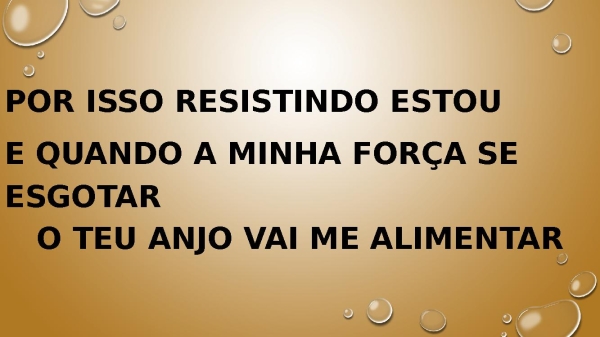- Por isso resistindo estou E quando a minha força se esgotar O Teu anjo vai me alimentar