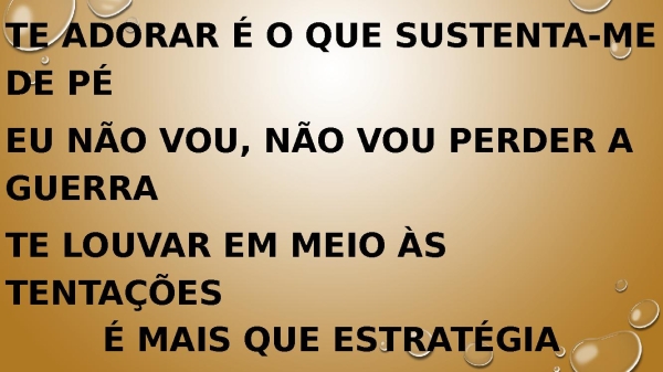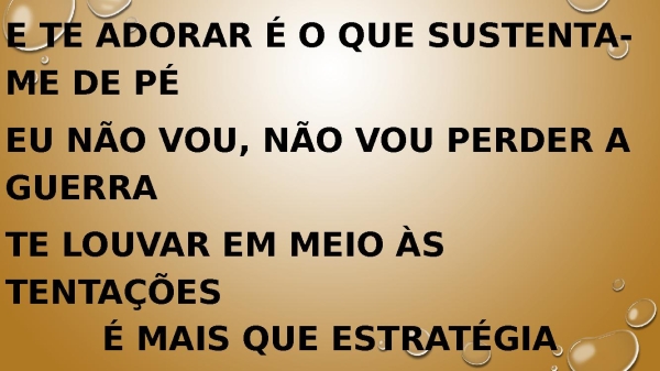 - E Te adorar é o que sustenta-me de pé Eu não vou, não vou perder a guerra Te louvar em meio às tentações É mais que estratégia