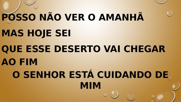 - Posso não ver o amanhã Mas hoje sei Que esse deserto vai chegar ao fim O Senhor está cuidando de mim