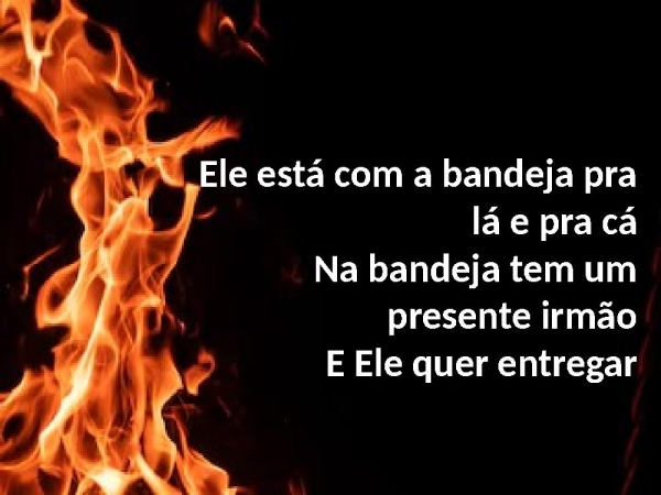 - Ele está com a bandeja pra lá e pra cáNa bandeja tem um presente irmãoE Ele quer entregar