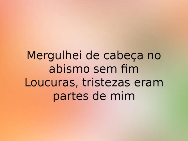 - Mergulhei de cabeça no abismo sem fimLoucuras, tristezas eram partes de mim