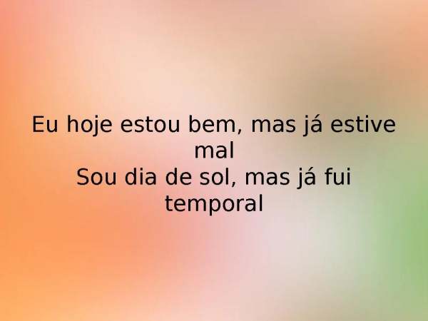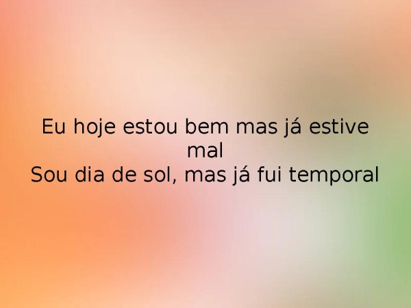 - Eu hoje estou bem mas já estive malSou dia de sol, mas já fui temporal