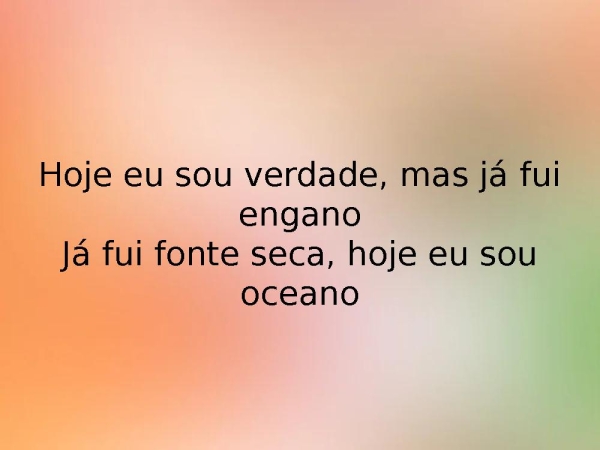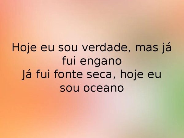 - Hoje eu sou verdade, mas já fui enganoJá fui fonte seca, hoje eu sou oceano