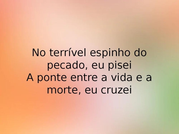 - No terrível espinho do pecado, eu piseiA ponte entre a vida e a morte, eu cruzei