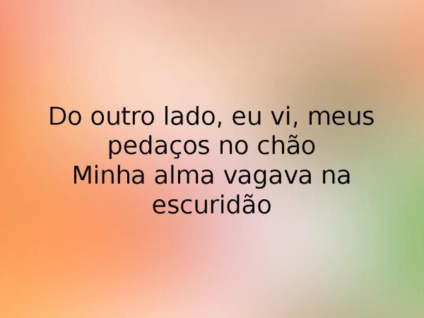 - Do outro lado, eu vi, meus pedaços no chãoMinha alma vagava na escuridão